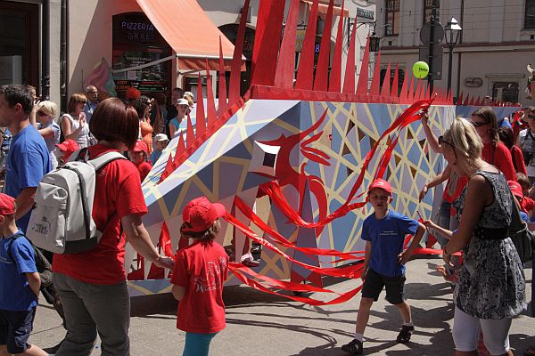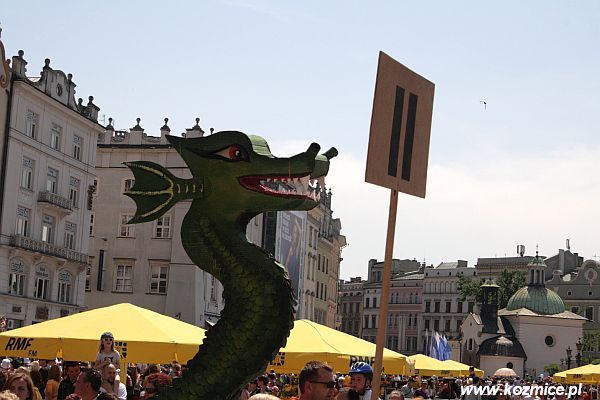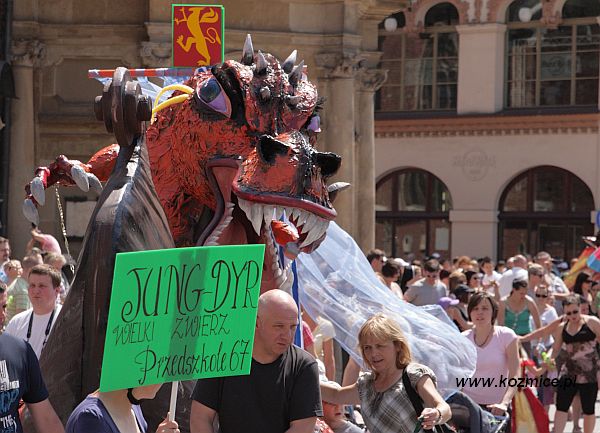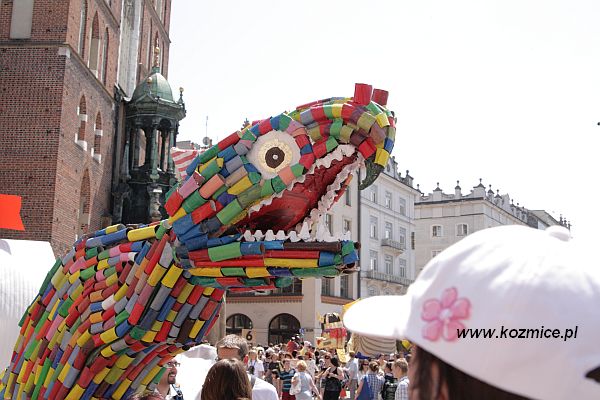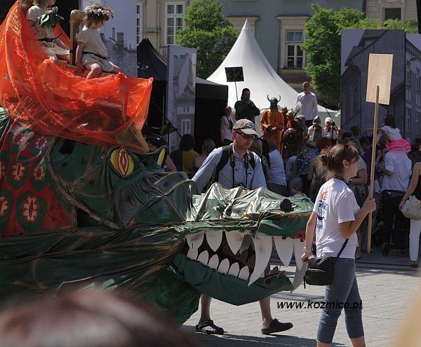Koźmidrag i 39 smoków![]() Koźmiczanie z Koźmidragiem przed Kościołem Mariackim. Zawdzięcza Koźmidrag swoje powstanie wielu, wielu ludziom, którzy bezinteresownie poświęcali swój czas przy projektowaniu, tworzeniu metalowej konstrukcji smoka, robotach stolarskich, malowaniu i ozdabianiu, transporcie i pracach organizacyjnych. Każdy z nich ma swoją cząstkę udziału w imponującym finale. Na niewiele jednak by się te wysiłki zdały, gdyby nie Ewa Kaczor, prawdziwa Smocza Mama. Koordynowała, nadzorowała, improwizowała, dwoiła się i troiła a jej uwadze nie umknął najdrobniejszy nawet, smoczy detal. Za rycerską odwagę i smoczą determinację w tworzeniu Koźmidraga, cała Smocza Drużyna zasłużyła na odznaczenie Wielkim Medalem Hodowców Smoków Niebojowych a indywidualnie, Ewa Kaczor na Order Dragonii Wszechpolskiej ze Złotymi Łuskami dla Zasłużonych Hodowców Smoków Niebojowych i Reprezentacyjnych. czerwiec 2011